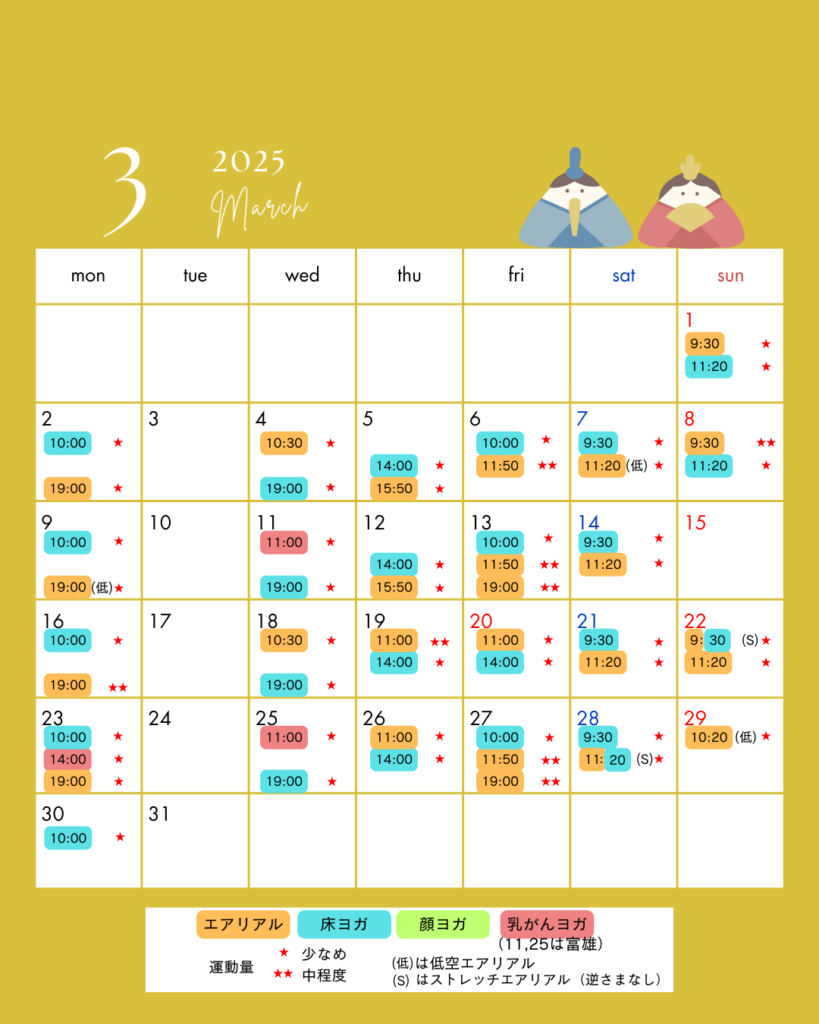 エアリアルヨガ・フロアヨガ・顔ヨガ・乳がんヨガ