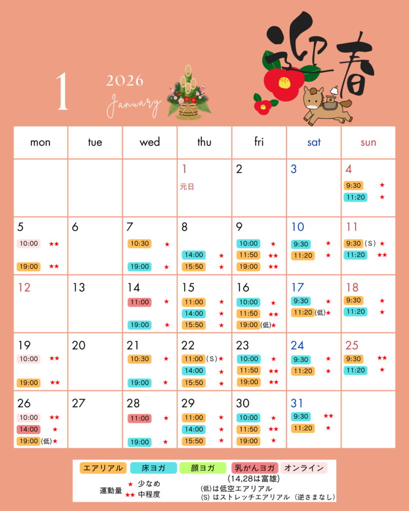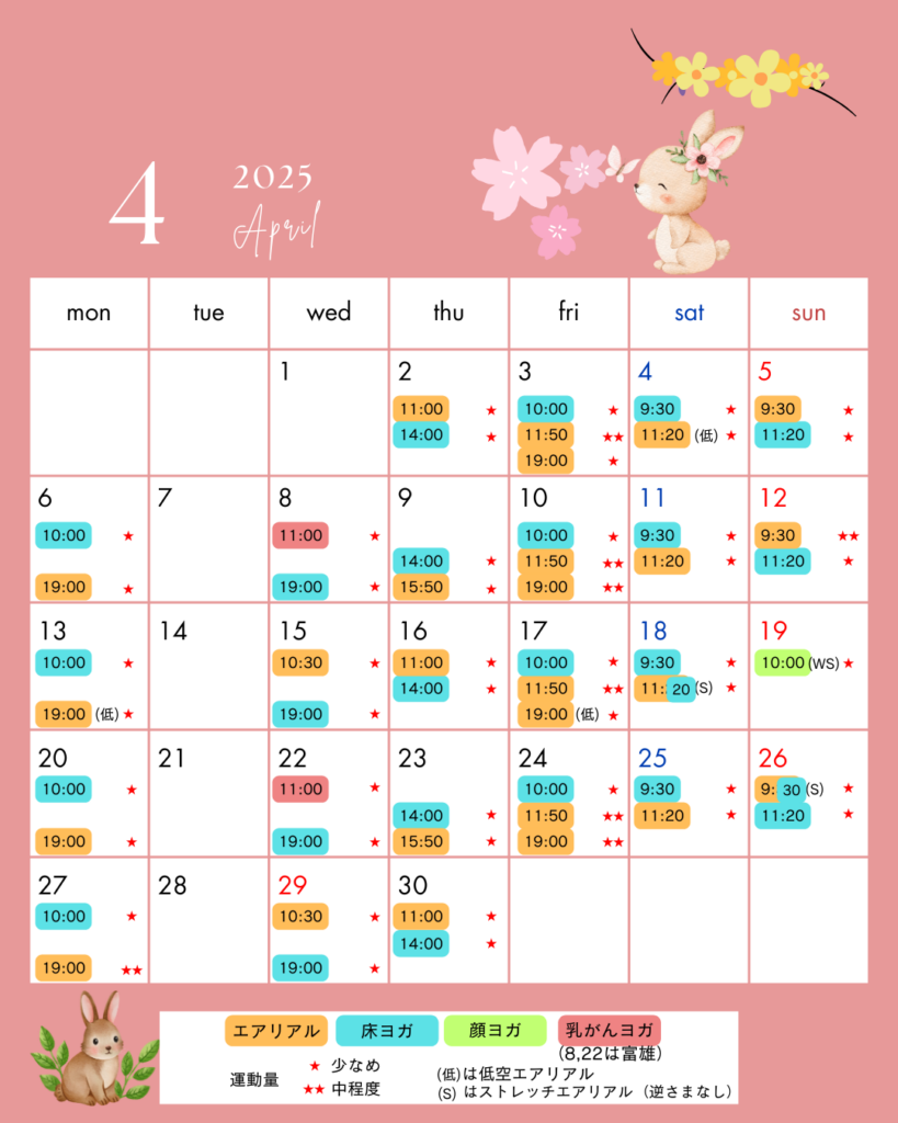 エアリアルヨガ・フロアヨガ・顔ヨガ・乳がんヨガ